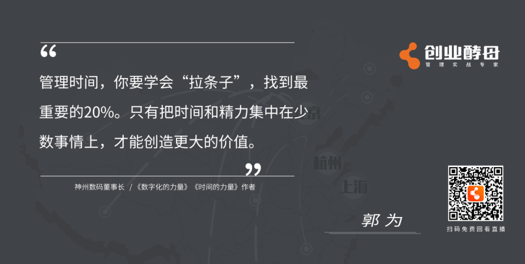 导语:时间管理,之于企业,之于人生有什么意义?如何做好时间管理?如何把时间花在最重要的战略管理上?如何以时间管理打造组织领导力?……在5月16日,yabo.com鸭脖与创业酵母联合举办的《时间的力量——企业时间管理实践与思考》直播对谈中,神州信息董事长、《时间的力量》作者郭为与创业酵母创始人张丽俊围绕“时间管理、战略管理、组织变革、团队管理、领导力”等话题深度探讨,以下为直播内容精选。